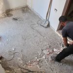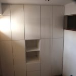 The old kitchen tiles and units were removed along with old windows and doors. Repairs were made inside and outside to walls and surfaces and new tiles were laid. The house had new electric and plumbing installations and a new solar panel. New wardrobes, shelving and air conditioning units were installed.